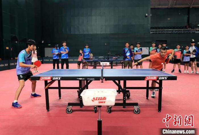 成都市的乒乓球训练馆里,球桌上弹跳的...